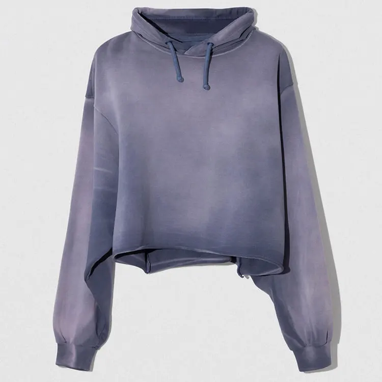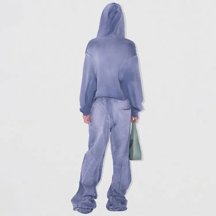 Huili Manufacturer Custom Logo Heavytweight Pullover Hooded Raw Hem Crop Top Acid Wash Tracksuit Women Sweatpants and Hoodie Set